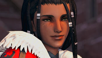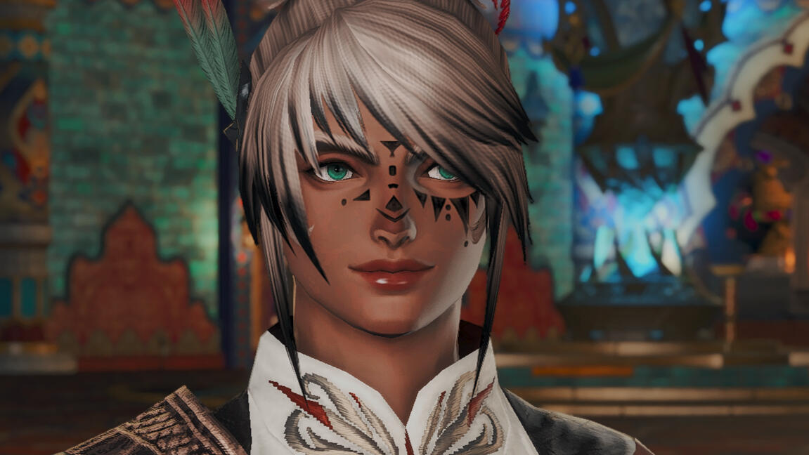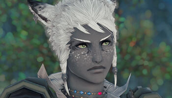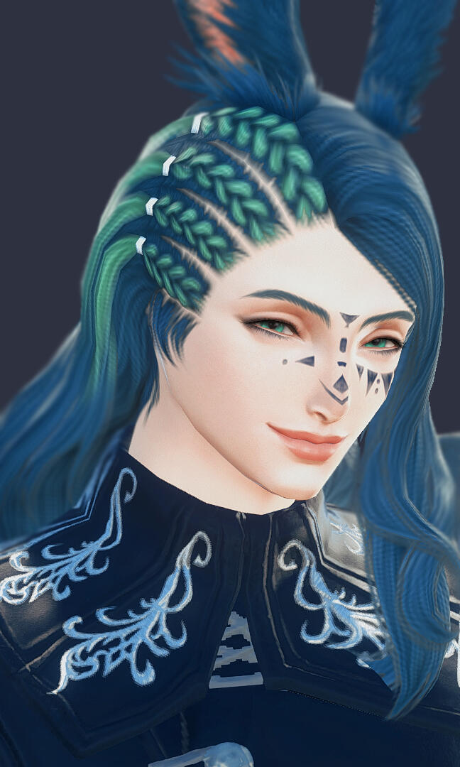 β’ His hair is naturally black, but he starting dyeing it brown Post-ARR / Heavensward. The trips to the First added faded blue highlights to his hair, which faded later on. During ENW, his hair temporarily became burgundy due to the travel to Elpis (Azem's natural hair color). After his father's death in ENW, he removed all dyes except a few strands of brown, in a way to mourn as himself and not just the WoL.β’ Always has a blush on his cheeks, lessening or worsening depending on the situation and weather.β’ Lacks the usual fur patches on his body as a Veena Viera (headcanon), but still has soft fuzz all over his body (canon).β’ Will attract moths to flutter around him, or rest on him, almost anywhere he goes.β’ Amputated tail, and huge scars all over his back from his first fight against Zenos.β’ In SHB, his right eye was infused with too much light, due to the near Lightwarden transformation. This also teared the skin around his eyes and nose, where scars now are. His eye slowly healed over time, the recent trips to the void helping into eating the light from it. The eyepatch he wears was so the light doesn't hinder his vision at first. Now that it is almost fully healed, he slowly alternates between wearing it and not, unsure about his eye's state.β’ As of Endwalker, carries Azem's crystal as a necklace.β’ As of Endwalker, wears precious gems in his hair to represent Leif, his father that died in the Final Days at Radz-At-Han. It is a Veena custom. (canon).β’ (AU) Is newly a dad, as of Post-Endwalker.